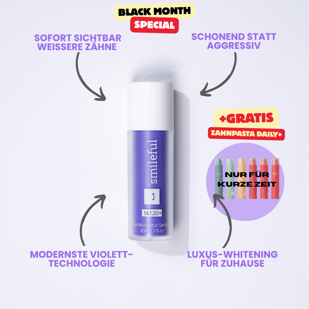 Inspiriert vom Prinzip des Silbershampoos: Ein violetter Farbton neutralisiert gelbliche Untertöne und gleicht Pigmente aus. Perfekt, um dein Lächeln in Sekunden sichtbar aufzufrischen – ohne Bleaching.